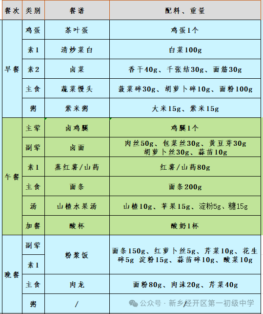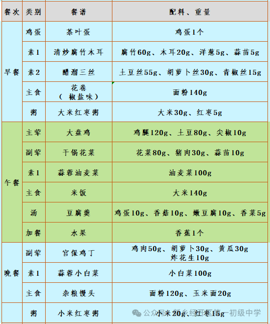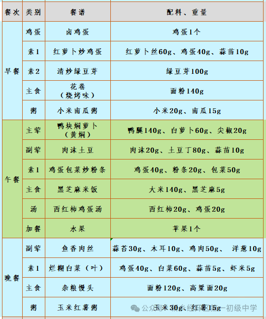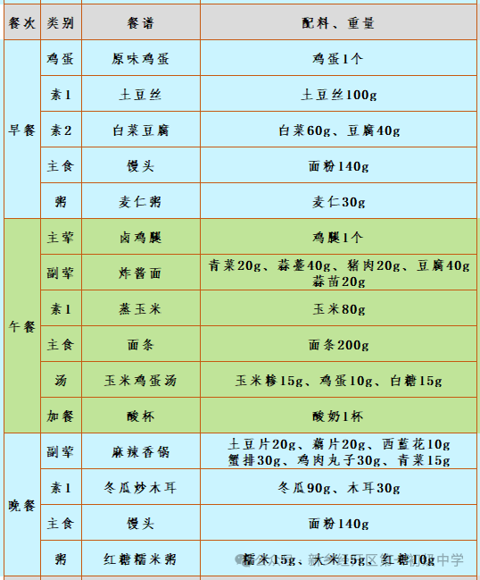第二十周营养食谱(1.12-1.16)