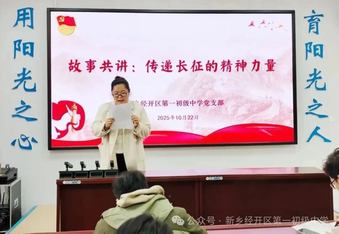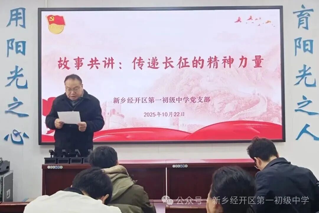 “长征故事我来讲”环节,党员教师以故事为载体,让长征精神直抵人心。 郝梦芸老师讲述长征模范谢宝金:忍饥分粮、背伤员蹚冰河、扛担架翻雪山,以平凡举动彰显“危难挺身而出”的英雄本色;秦学东老师重温“七根火柴”:无名战士临终托付火柴照亮前路,“微火点燃信仰”,让党员深刻感悟“革命理想高于天”。