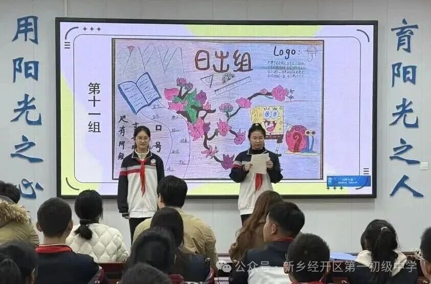 各班级小组围绕“名字、旗、公约”三大任务展开热烈讨论与精心构思。名字是班级的精神符号,凝聚着团队的理想追求(如“苍云图组”“二元一次方程组”等);海报是班级的文化名片,通过创意设计展现班级特色(如“日出组”的向阳主题、“云帆七渡组”的奋进意象);公约是班级的行为准则,承载着成员的共同承诺(如“二元一次方程组”的“严谨治学、互助共进”公约)。初赛阶段,各小组充分发挥团队协作精神,通过思维碰撞形成了高质量的班级文化成果。