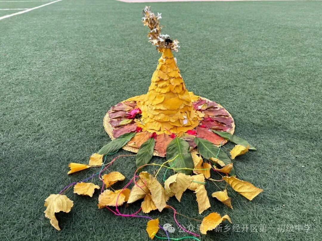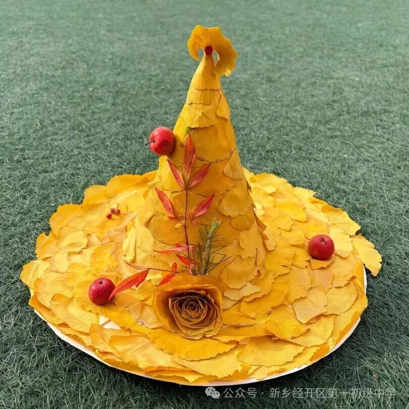 同学们用捡来的银杏、红枫、梧桐等各式落叶,充分发挥天马行空的想象力,精心创作属于自己的独特帽饰。