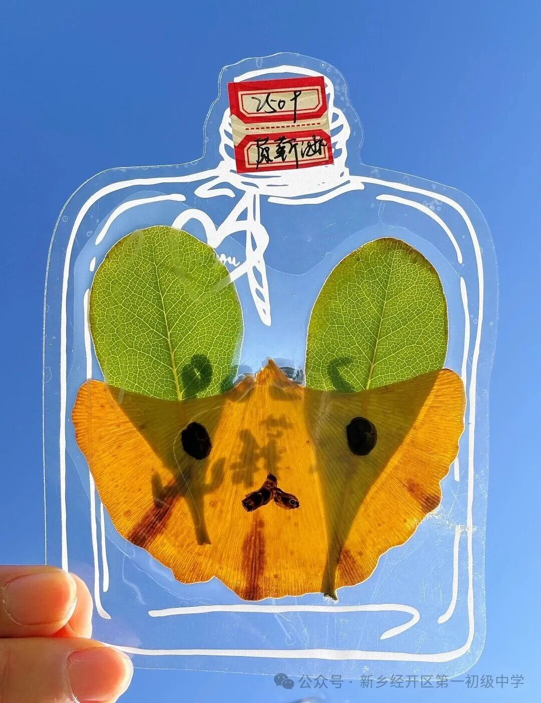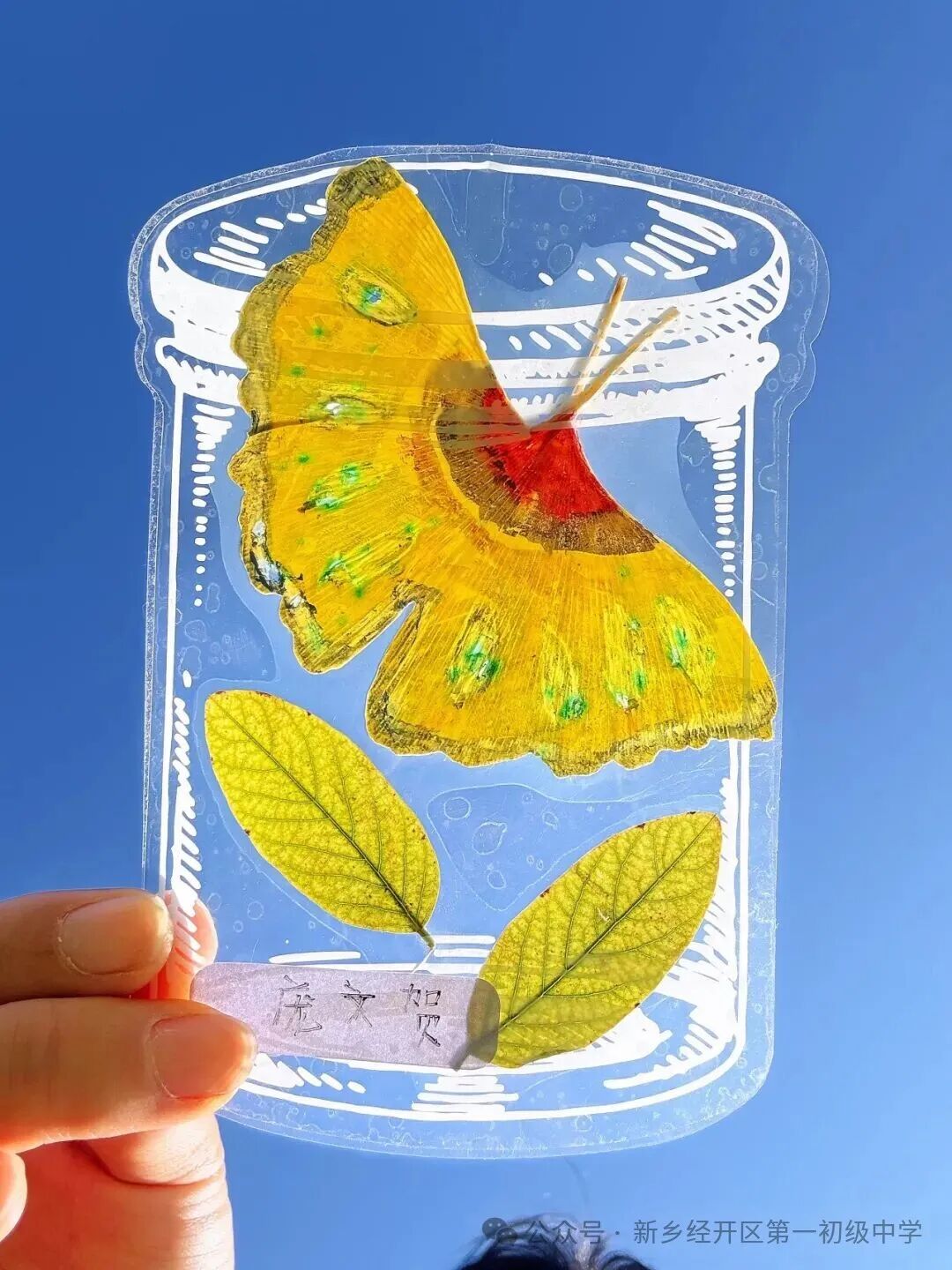 为了将这转瞬即逝的秋日之美长久珍藏,他们将树叶拼成灵动的图案,有的同学还在其中嵌入一句悄悄话,让情感与植物一同被封存于一方透明的书签中。