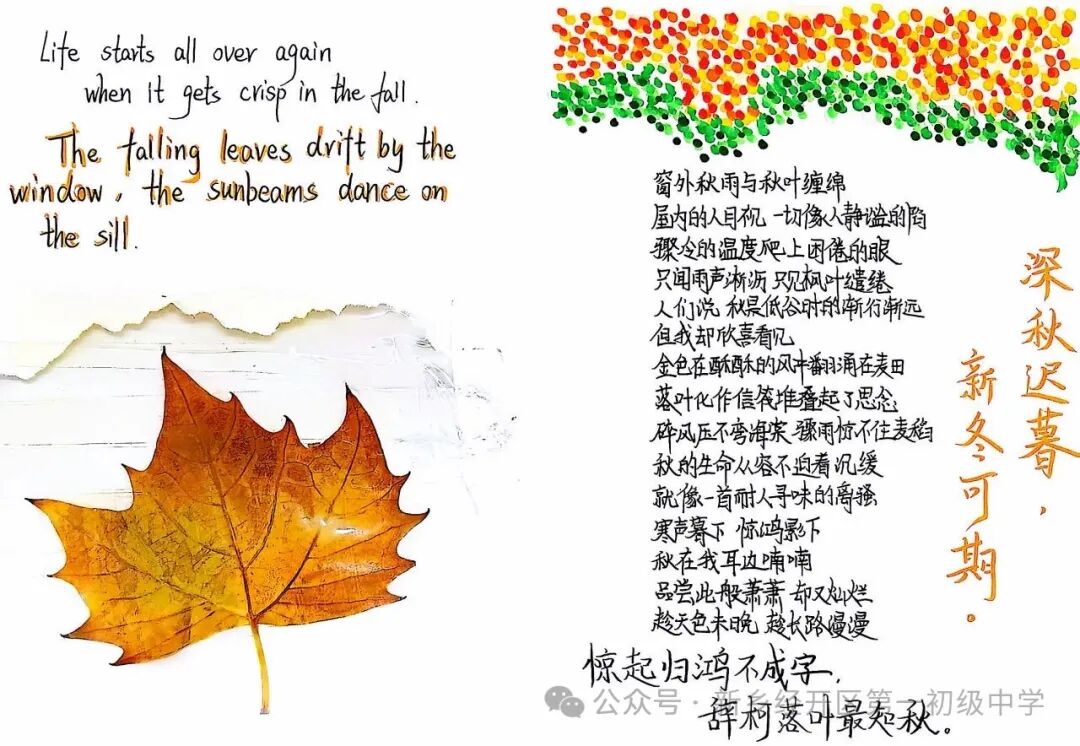 在这场与落叶的温柔邂逅中,同学们学会了发现美、创造美、表达美,更懂得了珍惜自然馈赠。未来,我校将继续秉持“阳光育人”的办学理念,用美育浸润实践,让青春之美在经一中学的校园中璀璨绽放。