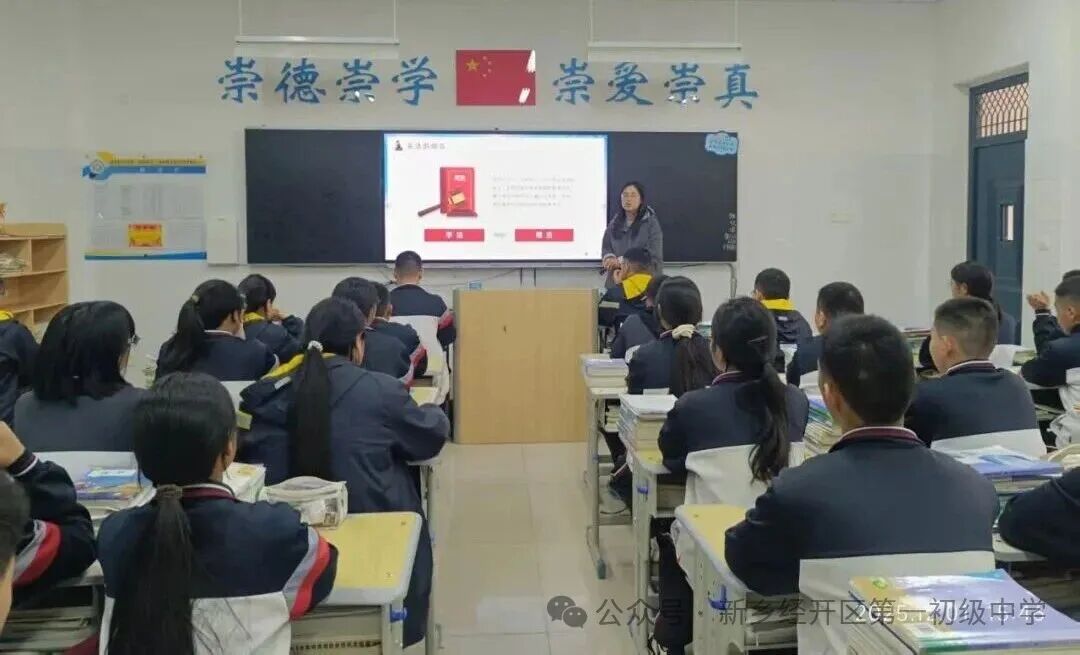 12月1日下午,各班有序开展宪法主题班会课,班主任们通过PPT、宪法公益广告及动画短片普及宪法知识。
