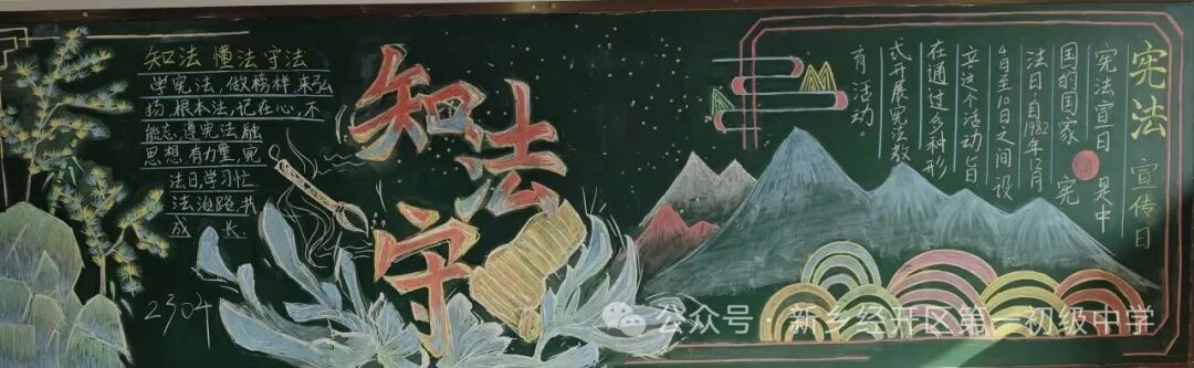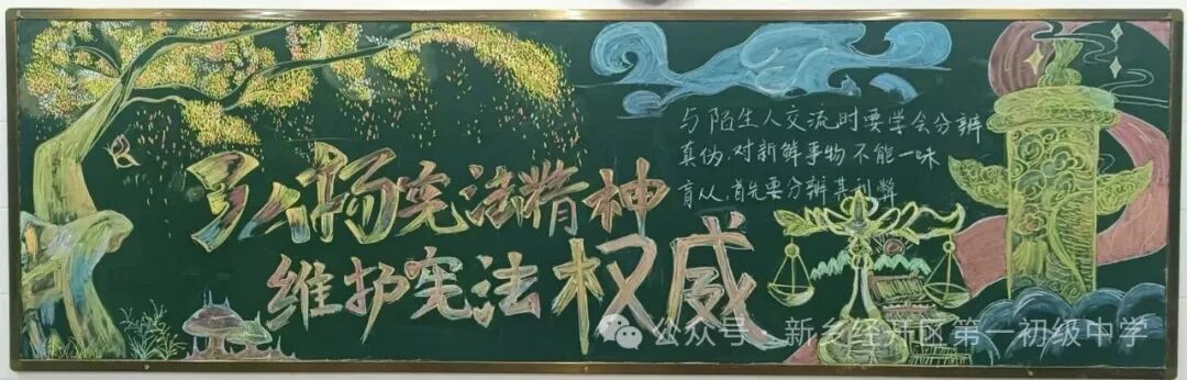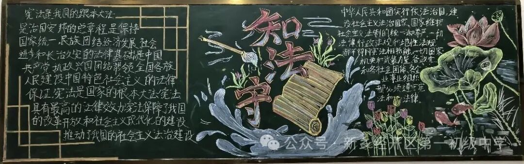 本周九年级也积极开展以“弘扬宪法精神”为主题的黑板报创作活动,通过图文并茂的形式展现宪法精神,将法治意识融入校园文化。