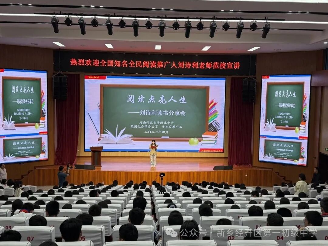 阅读,是穿越时空的灵魂对话,是滋养心灵的无声雨露。在世界读书日来临之际,为进一步厚植校园书香底蕴,传承阅读文化,4月15日,河南师大附中教育集团“阅读点亮人生”读书节主题活动在附中本部道德讲堂隆重举行。我校40名八年级学生代表,与各集团校师生齐聚一堂,共赴一场浸润心灵的书香之约,共品阅读之美、共悟成长之道。
