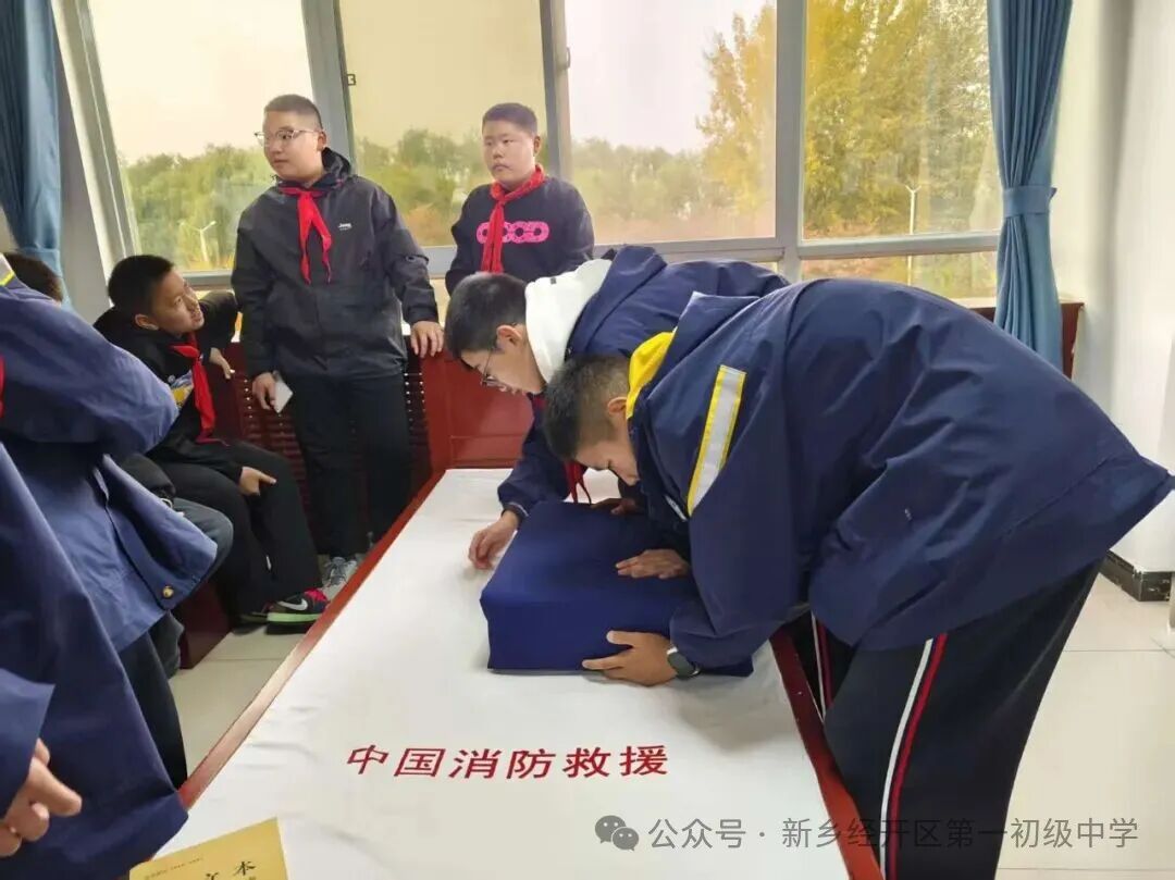 为进一步增强学生的消防安全意识,普及生命安全知识,提升应急自救能力。11月10日下午。我校学生会成员走进经开区纬八路消防救援站,开展以“走进火焰蓝,安全伴我行”为主题的沉浸式消防研学活动,将校内的安全知识学习,延伸为一场直面“火焰蓝”的零距离体验。