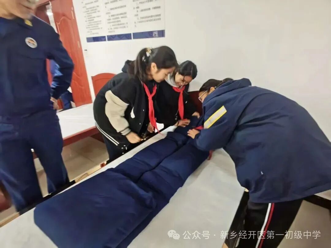 最后,在吴站长的带领下,同学们走进了一尘不染的宿舍。当看到床上那方方正正、棱角分明的“豆腐块”被子时,大家不约而同地发出了惊叹。消防员一边讲解一边示范,从被子的铺平、折叠到最后的修整,每一个动作都精准而熟练。同学们跃跃欲试,纷纷动手尝试,不仅掌握了叠被子的技巧,更深刻体会到了消防员严谨细致、一丝不苟的作风。