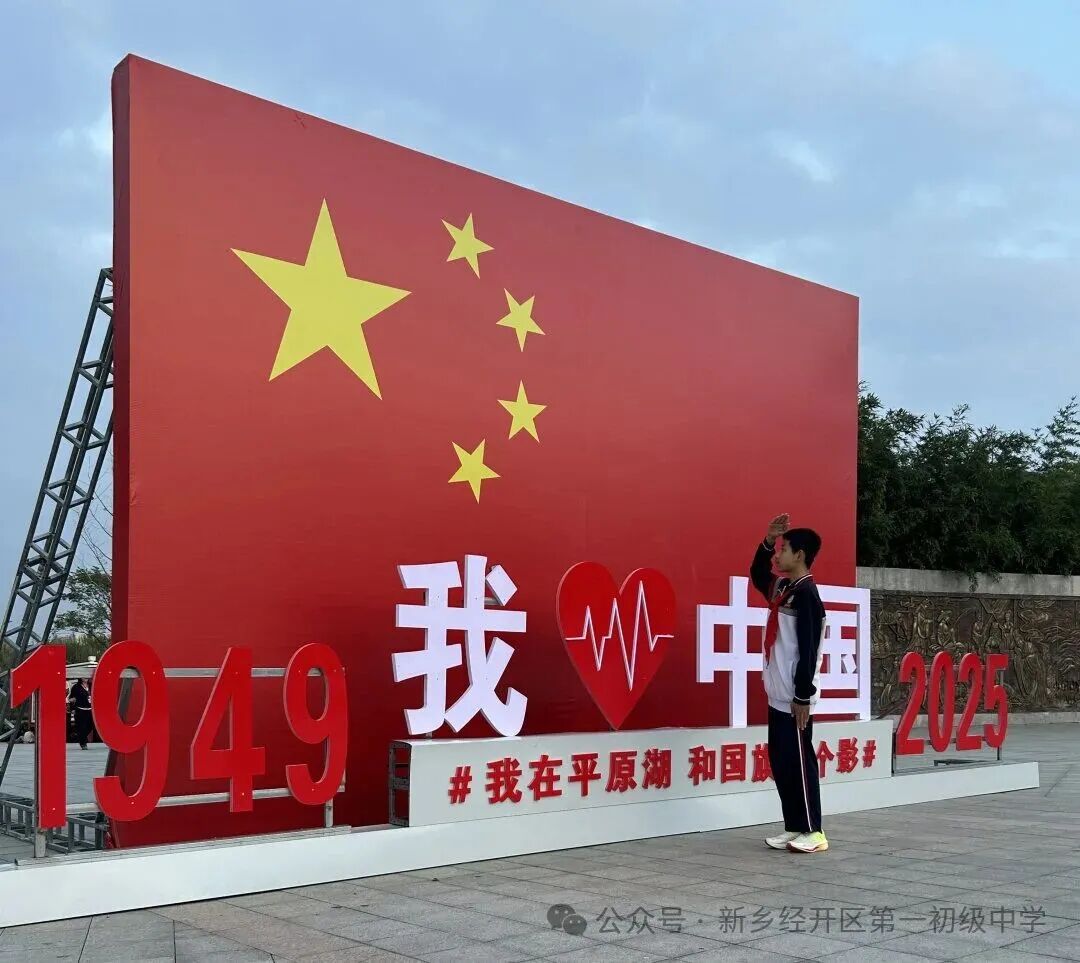 “我与国旗合个影”摄影活动激起同学们的创意热潮。学生们手持小国旗、脸贴国旗贴纸,摆出“五角星”“爱心中国”等造型,用镜头记录与祖国的亲密时刻。在鲜红旗帜的映照下,同学们一张张幸福的笑脸,就是对祖国最美好的祝福!