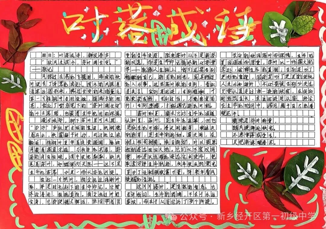 在这场与落叶的温柔邂逅中,同学们学会了发现美、创造美、表达美,更懂得了珍惜自然馈赠。未来,我校将继续秉持“阳光育人”的办学理念,用美育浸润实践,让青春之美在经一中学的校园中璀璨绽放。