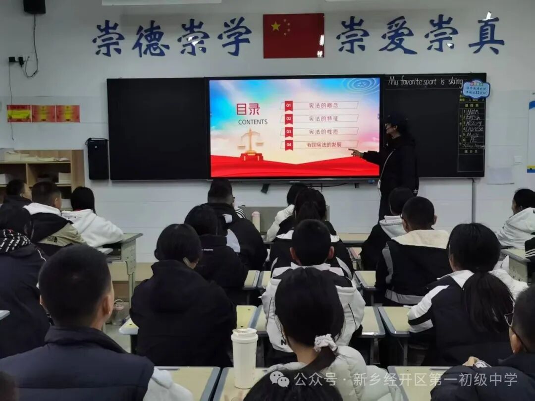 12月1日下午,各班有序开展宪法主题班会课,班主任们通过PPT、宪法公益广告及动画短片普及宪法知识。