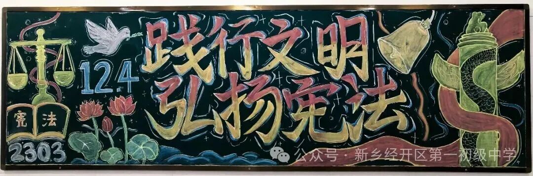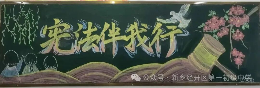 本周九年级也积极开展以“弘扬宪法精神”为主题的黑板报创作活动,通过图文并茂的形式展现宪法精神,将法治意识融入校园文化。
