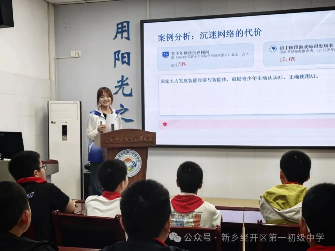 活动中,宣讲团成员结合校园生活实例,生动讲解人工智能在教育、医疗、交通等领域的应用,现场演示AI动画创作,深入浅出揭示算法原理。围绕AI使用安全、技术伦理等内容,通过情景答题互动引导学生理性思辨,并普及安全用网知识与AI学习“三不原则”。