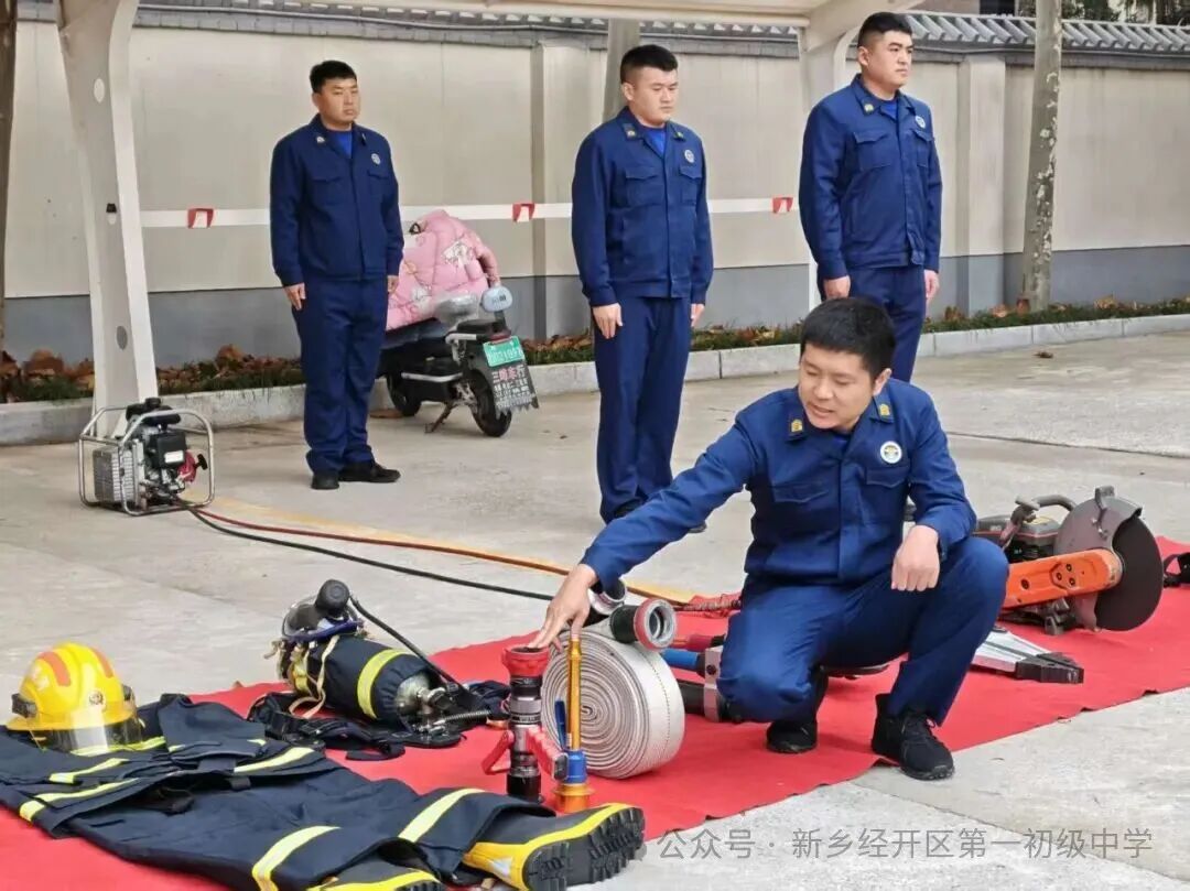 活动伊始,纬八路消防站站长吴昊向同学们展示了各类专业器材及功能用途,并邀请学生亲身体验穿戴消防服,感受消防员肩负的责任与使命。