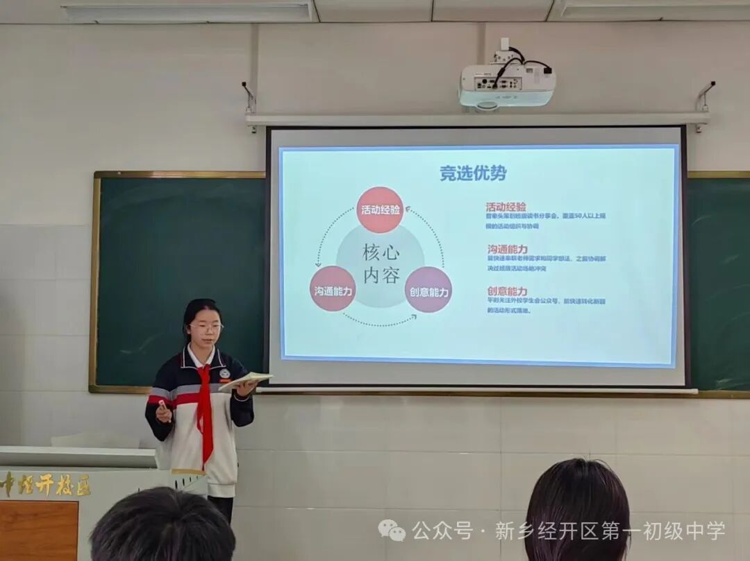 本次换届以学生自治为核心,由学生指导中心牵头,各年级德育主任、师生代表组成评选小组,全程恪守“公平、公正、公开”原则,公示各关键环节,为学生提供平等竞争平台,彰显学生自治主体地位。